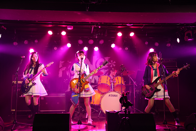 4人で感謝を伝えると、「駆け抜けて行くっすよ!」という花井の言葉から「”STAR”T」を放つ。撫子が仲間と出会い、バンドを始めるんだという高鳴る気持ちを表現した感動的なナンバーをリードボーカルの花井が高らかに歌い上げる。途中、ほぼ楽器の音がなくなり、声だけになるところがあるのだが、バンドに懸ける熱い想いがビシビシと伝わってくる心震わせるボーカルだった。