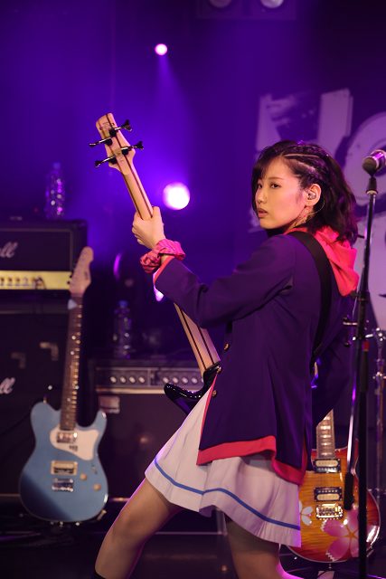東城:私は師匠にベースの手元の映像を用意していただいて練習をしていました。JAEPOのときは、アバウトにここらへんを押さえてという感じでジャカジャカ弾いていたんですが、今回は歌っていないところだけでも弾けるようになれたらと思って練習をしていたら、楽しさが止まらなくなっていました(笑)。なので最後は、師匠に音を簡略化してもらったアレンジだったら全曲弾けるようになっていたんです。ライブのときは、七々瀬はバンマスでもあるので、リズムを合わせるとき、なるべくドラムを見るようにしていました。