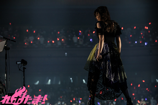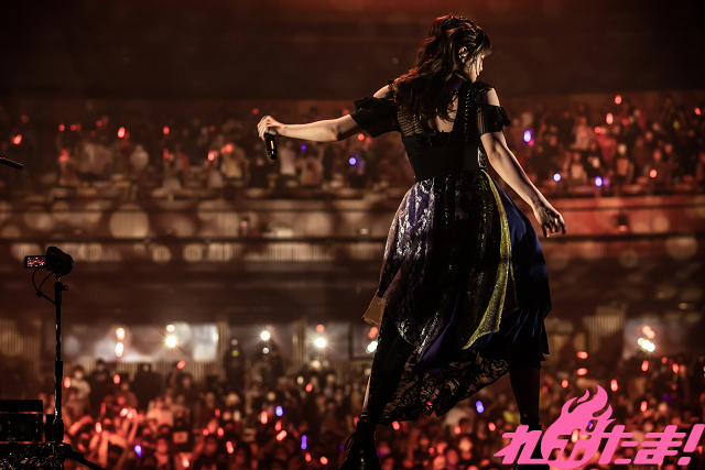 ここからは早くもラストスパート!「Realize」ではバックで炎が上がり、シャウトしながら「私がモテないのはどう考えてもお前らが悪い」を熱唱した。