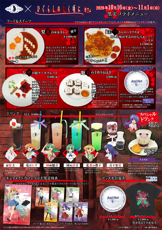 10月から放送がスタートしたTVアニメ『ひぐらしのなく頃に』と『キュアメイドカフェ(ジーストア・アキバ6F)』のコラボが10月16日(金)~11月1日(日)期間限定で開催中!