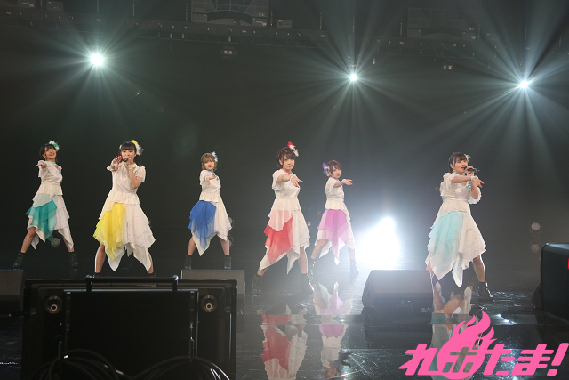 最初のMCでは、田中さんが「今日はみなさんに『頑張れ!』のメッセージをお届けしたいです!」と意気込む。また、山田さんが手に持ったタブレットにリアルタイムで映し出される、視聴者からのコメントを読み上げていき、メンバーとファンとの想いがシンクロしていくのを感じることができた。