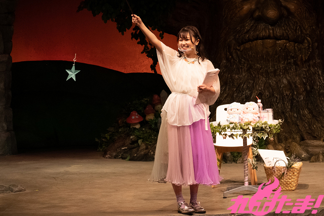 この日の三澤さんはおとぎ話の世界のような会場に合わせ、昼の部はリトルツインスターズ(キキ&ララ)をイメージしたという天使のような衣装、夜の部はハロウィン感溢れる衣装で登場。大好きなキキくんララちゃんと仲良くなり、その姿を通じてみんなにも2人をより知ってもらいたいと意気込みを語ると、さっそくイベントがスタート!