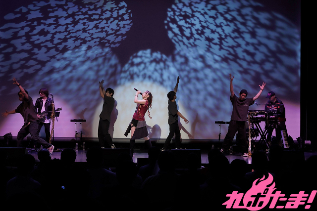 続いてもミニアルバムから「my place」を歌唱。幕間では作曲をした伊良波大空さん、「もりのワールド」を手がけた鍋谷卓摩さんが登場した、レコーディングの模様を収めた映像が紹介されると、ここからはスペシャルゲストの登場! キーボーディストで作曲家の渡部チェルさんとギタリストの坂本光久さんがサプライズで登壇し、渡部さんが手がけた新曲「Sky Blue」や浜崎あゆみさんの「Who」を初披露した。