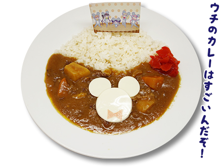 衣乃が街の皆さんから恵んでもらった野菜を入れ、アニメのエンディングで登場するネズミ姿の「フルーツタルト」メンバーをイメージしたネズミ型チーズがのっています。ネズミ荘でカレーをご馳走になった気分が味わえるかも!