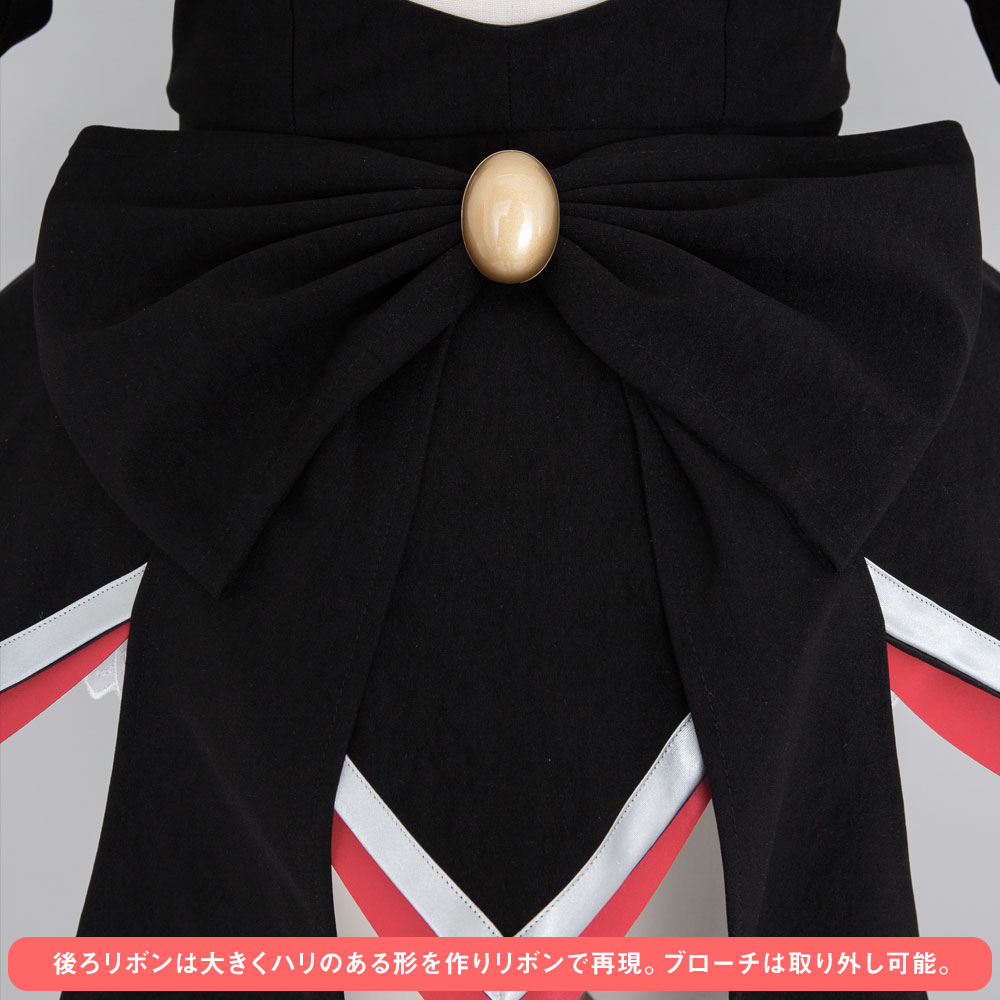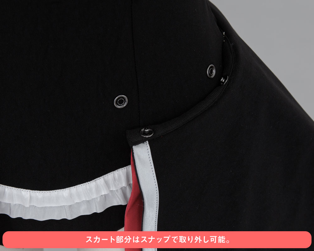 ボリュームのあるスカートや腰のリボン、つけ衿についたゴールドのブローチなどはそれぞれボタンやピンで簡単に取り外し可能で、お手入れの際も安心!