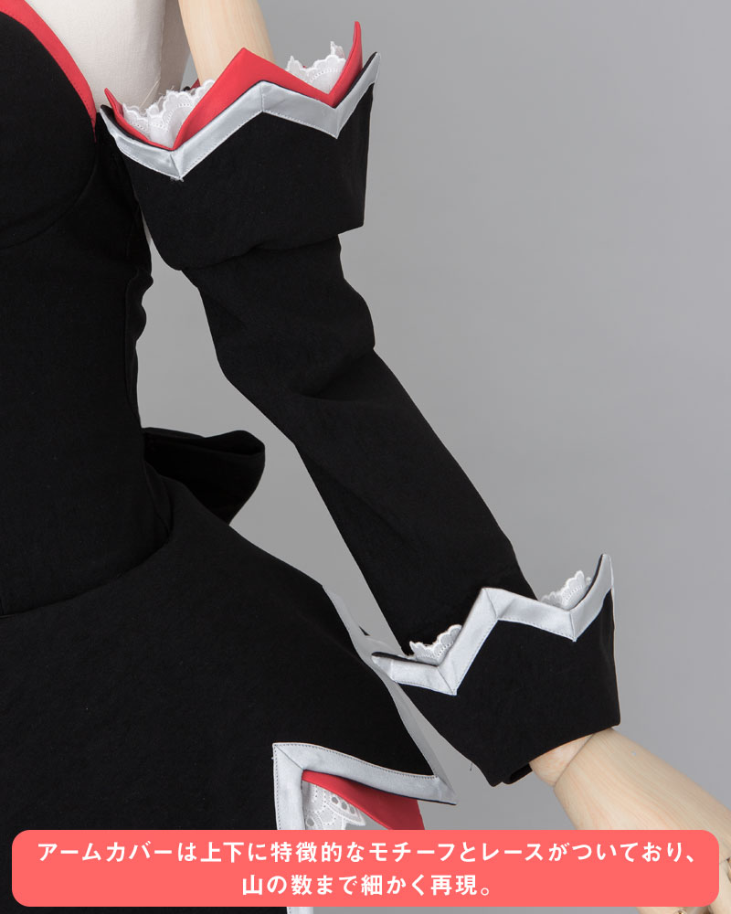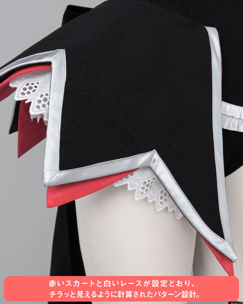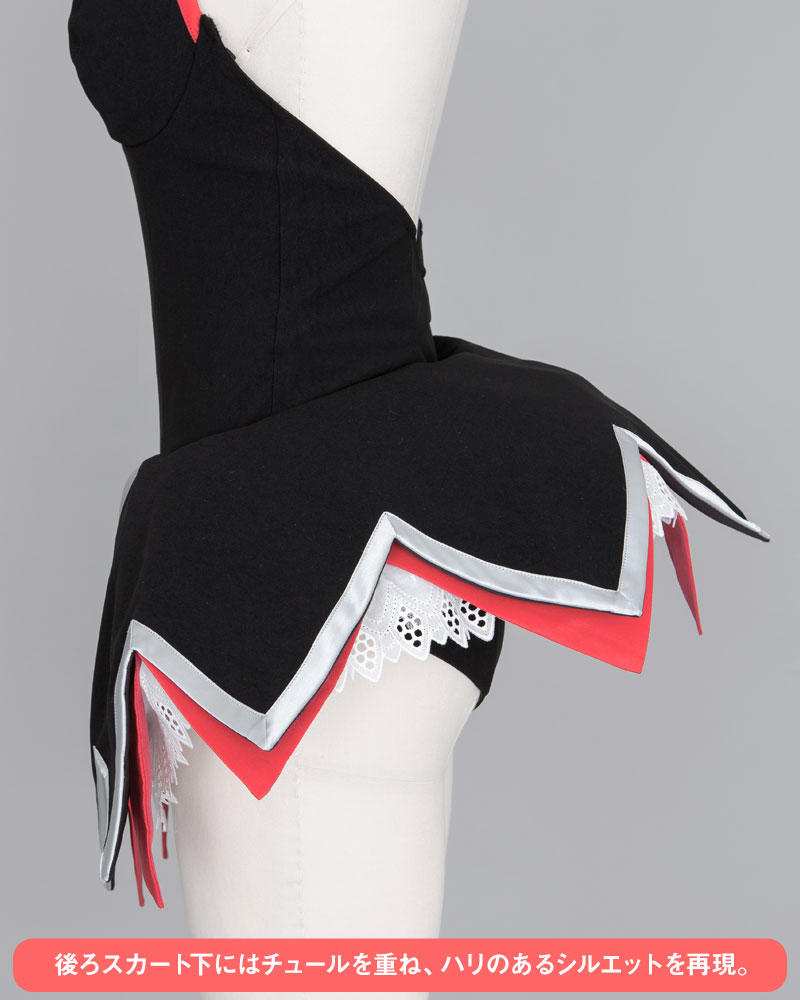 大きく広がるギザギザのデザインが可愛いスカートは、後ろが跳ね上がったようなシルエットを再現するため、チュールを重ねてボリュームを出しています。