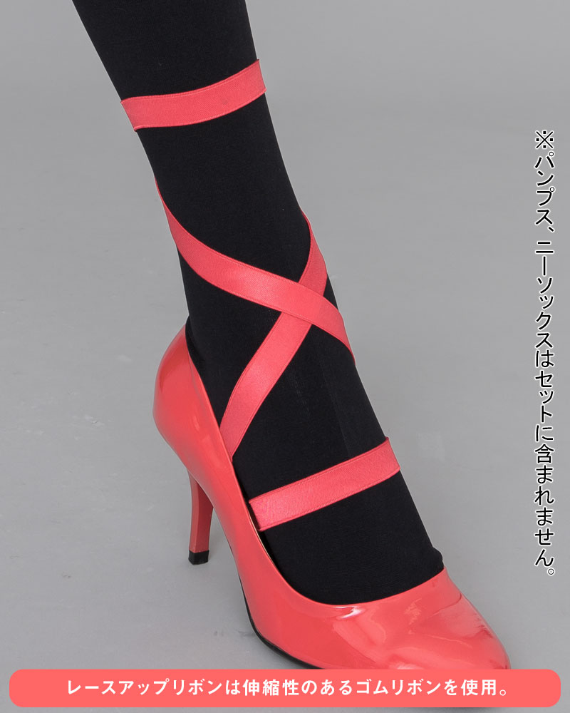 ■足先につけるレースアップリボンは動きを妨げないよう伸縮性のあるゴム製のリボンを使用。