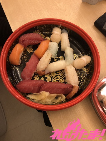 「NOT PYGMALION」を歌唱したあとは、サプライズの「バースデーケーキ」……ならぬ「バースデーお寿司」が登場! 思わず醤油をこぼしてしまうほど(?)大よろこびのこのみんだった。