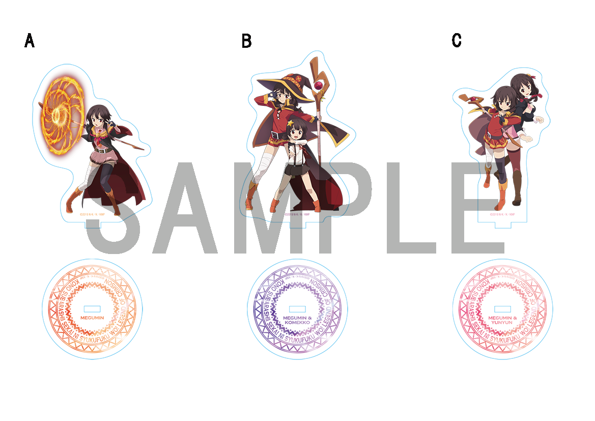 サインキャスト: カズマ:福島 潤/アクア:雨宮 天/めぐみん:高橋李依/ダクネス:茅野愛衣/ゆんゆん:豊崎 愛生 B賞:めぐみんのクリスマスカード C賞:特製《紅魔族》ステッカー(全5種) ※A賞は、1月1日(金)以降のお渡しとなります。