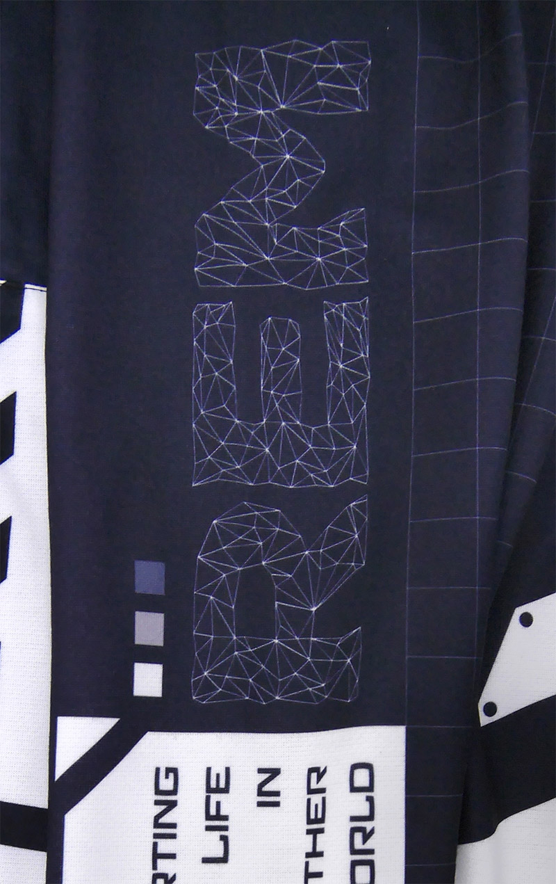 スタイリッシュなレムと近未来的なデザインがマッチしたグラフィカルなパーカー