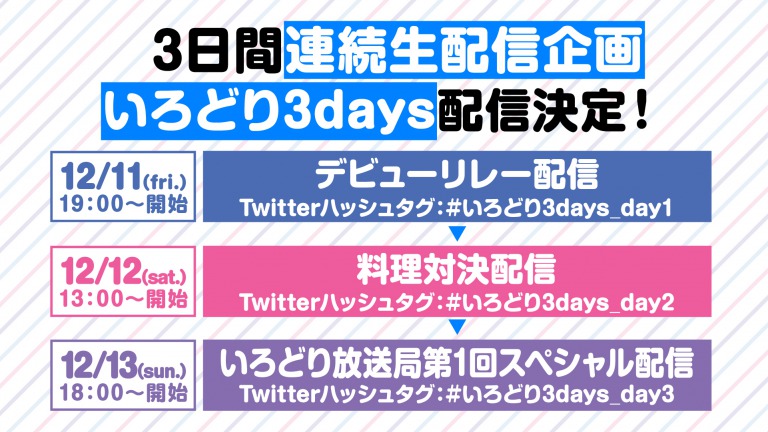 ☆さらに! 初配信日となる12月11日(金)より、3日間連続生配信企画「いろどり3days」がスタート!