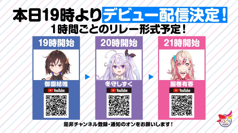 2021年1月以降、脚本をもとに所属Virtual Actorが練習配信を行っていきますので、3人の演技力の成長と共に、展開される物語にも是非ご注目下さい。