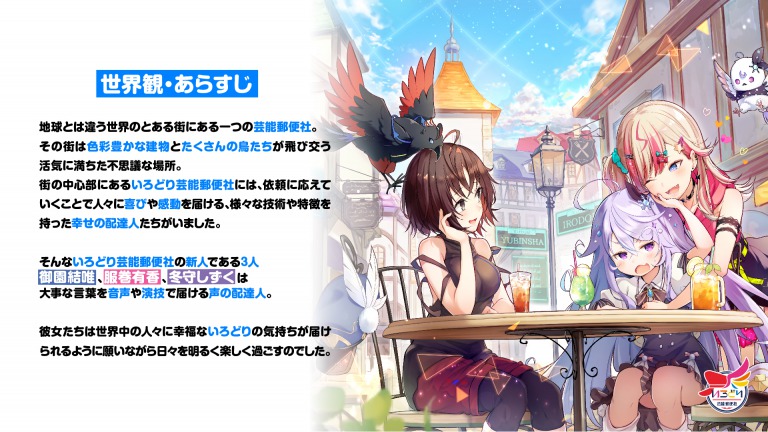 そんないろどり芸能郵便社の新人である3人、御園結唯(みそのゆい)、服巻有香(ふくまきゆか)、冬守しずく(ふゆもりしずく)は、大事な言葉を音声や演技で届ける声の配達人。