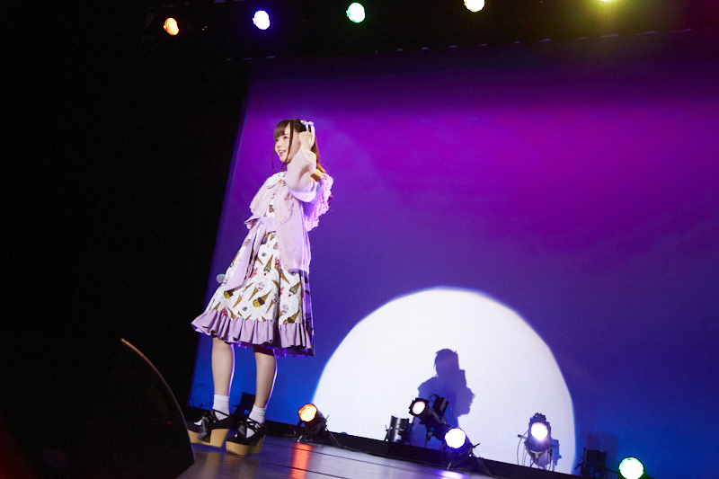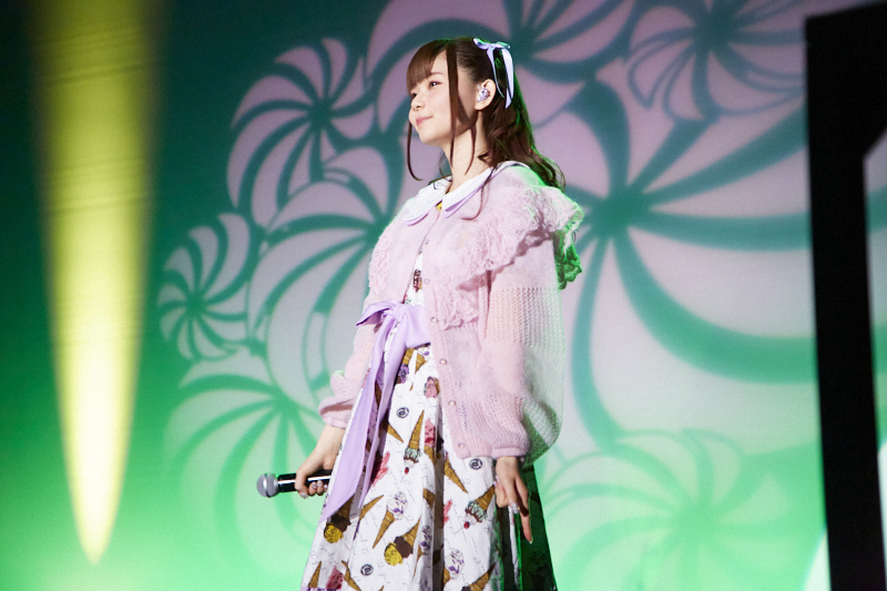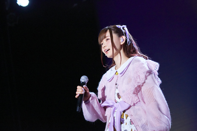 そんなトークコーナーのあとは、お待ちかねのライブコーナー。ミニアルバムから「Morning glow」と「揺れていたい」を披露。ファンもペンライトを振ったり、クラップをして楽しんでいました。「Noonの回なので、朝・昼っぽい曲を選んでみました。みんなも思い思いに、揺れてみたり、クラップしたり、楽しんでいただけましたか? それではあともう1曲、聴いてください!」と言って歌ったのは、みんなで楽しめる「Lilac」。会場もパープル色のペンライトを目一杯振って、一緒にライブを楽しんでいる感じが最高でした。