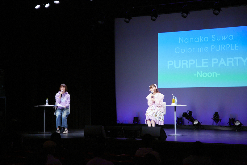 「紫色のものを身に付けてご来場ください」というドレスコードが設けられていた本イベント。会場にはパーカーやマスクやネクタイなど、それぞれお気に入りの紫色のアイテムを身に着けたファンが集まり、諏訪ななかさんの登場を待ちます。