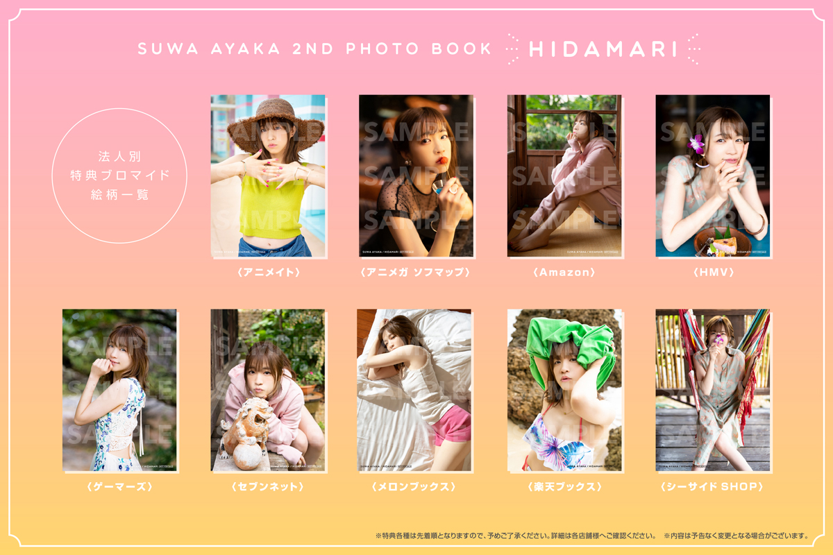 また AKIHABARA ゲーマーズ本店にて諏訪彩花 2nd 写真集「ひだまり」発売記念イベントが 2021年1月30 日(土)・31 日(日)に開催されます。イベント内容はオンラインお話会を予定しております。ゲーマーズ(オンライン ショップを含む)にてご購入・ご予約頂いた方がご応募頂けます。詳細はゲーマーズ公式サイトのお知らせをご覧ください。