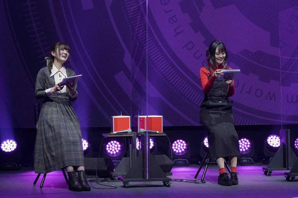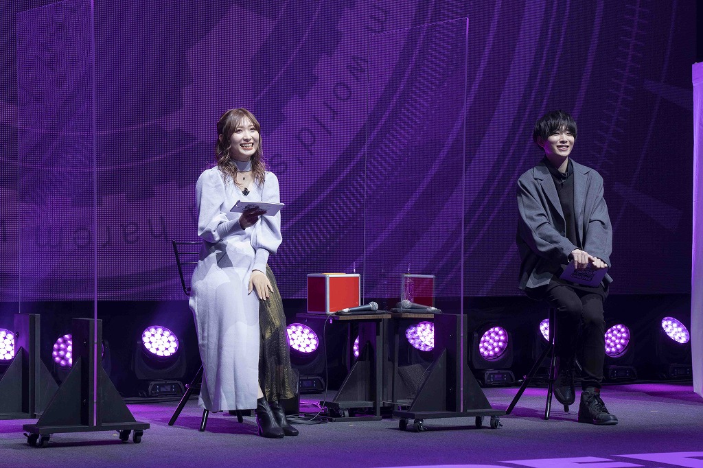 「何がでるかな?先取り!生アテレコ」のコーナーでは、各キャラクターの紹介を兼ね、用意された3つのセリフから1つを抽選して声優陣がその場で読み上げます。最初のキャラクター・美来は、怜人に女性たちをあてがうようなセリフが選ばれました。白石さんは、美来を「冷静で淡々としている」と評したとおり、「攻めた」セリフでありながらも粛々とミステリアスに読み上げます。