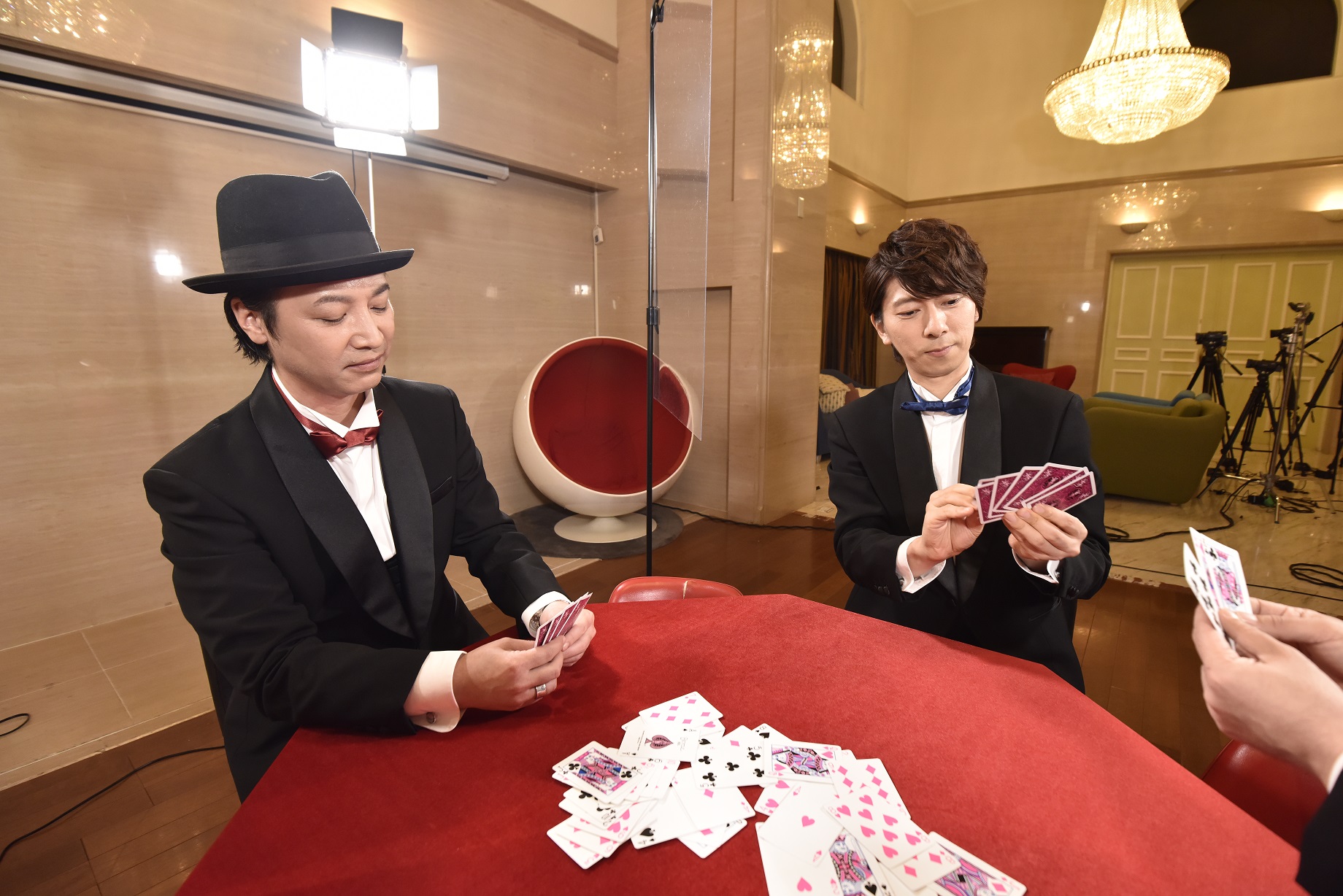 1ゲームは4種類(初回ゲームは、ババ抜き、7並べ、ダウト、神経衰弱)のバトルで構成。第1ゲームには各事務所のリーダーが出演します。そして、そのバトルを見守るゲームマスターとディーラーの2人がシーズンを通して番組を進行していきます。