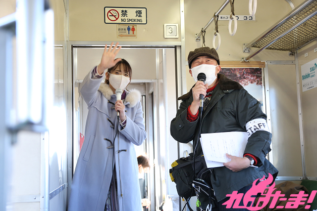 そして終点の真岡駅が近づき、車内アナウンスが流れ始める。アナウンスの最後に収録された「すずしろ」の『しゅっぱつ~』のコールに合わせて、 皆が親指と人差し指をL字型に立てた手を振りかぶり、一斉に前へ突き出して『しんこーう!』と叫び、イベントは終了した。
