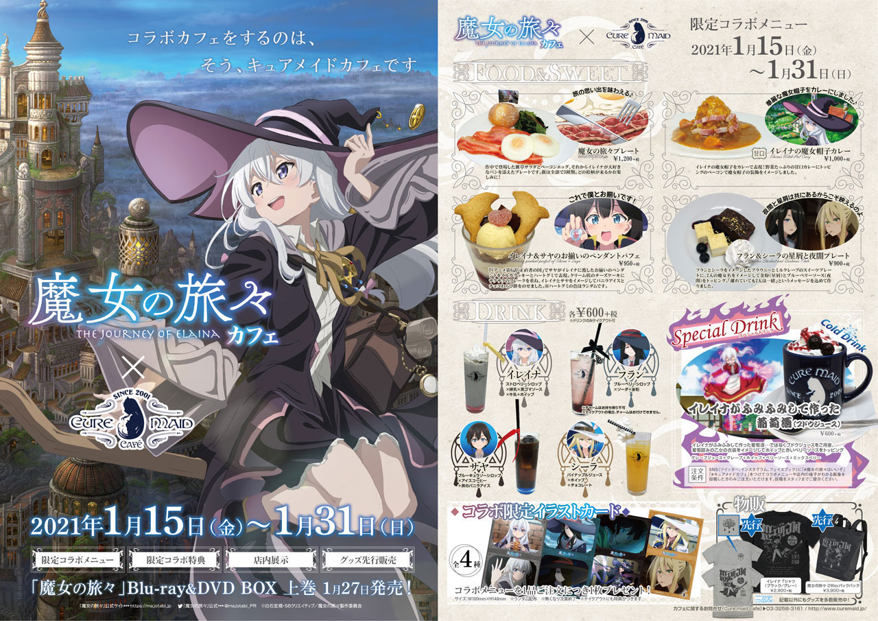 『魔女の旅々』BD&DVD BOX 上巻が1月27日に発売されるのを記念して、1月15日(金)~キュアメイドカフェにてコラボカフェが開催です!