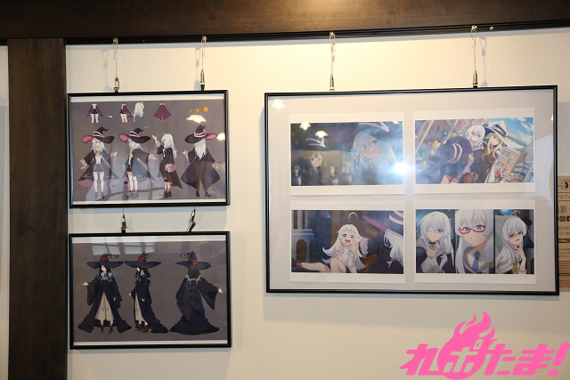 カフェ店内はイレイナ役 本渡楓さんの着用衣装や場面写真の展示など、先行販売の「Tシャツ」などをはじめとする『魔女の旅々』グッズもずらり。