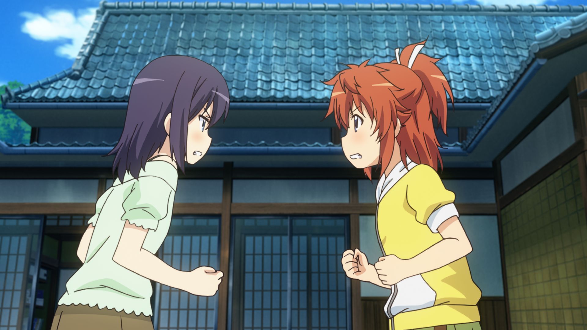 夏、居間で越谷夏海がくつろいでいると チャイムが鳴りました。玄関を開けると、 そこにいたのは宮内ひかげ。 夏休みになって東京から帰ってきたようです。