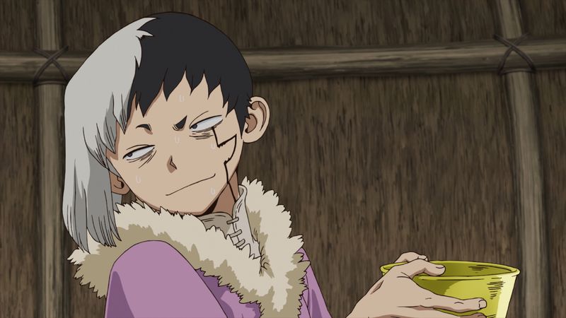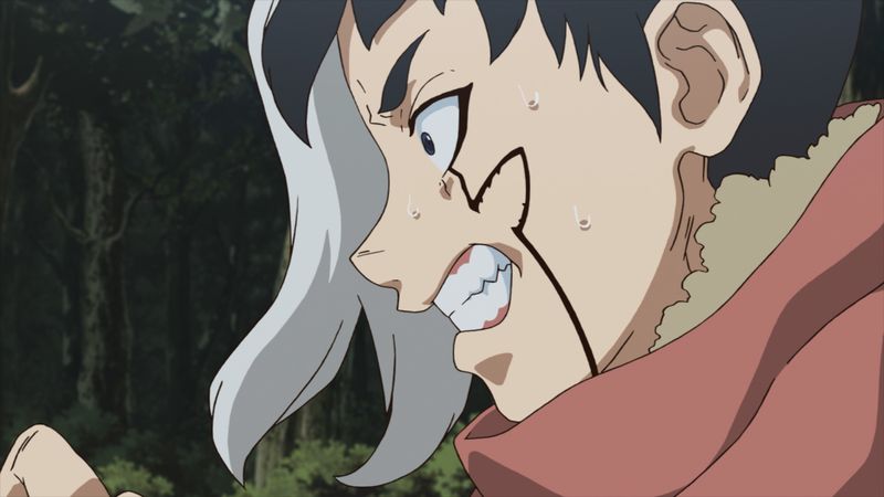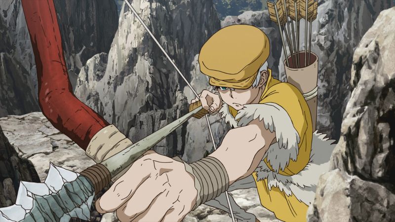 一方、司帝国で弓使いの見張り役・羽京に見つかってしまったクロム達。