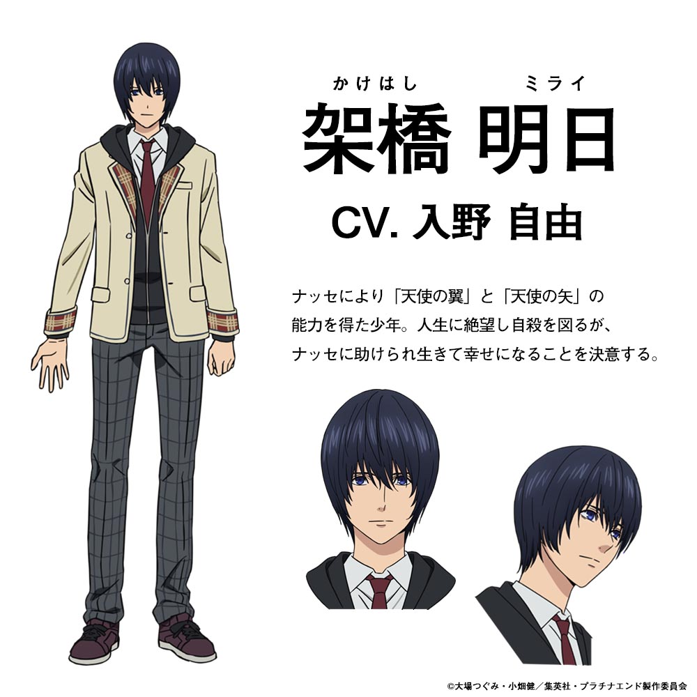 『DEATH NOTE』『バクマン。』を生み出した、大場つぐみ(原作)と小畑健(漫画)の強力タッグが手掛ける最新作『プラチナエンド』、TVアニメ版の架橋明日(かけはしミライ)とナッセのキャスト・キャラクター設定が解禁された。