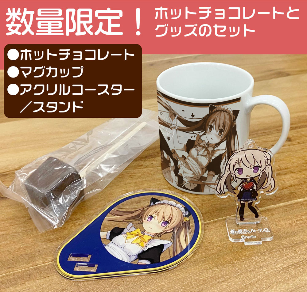 さらに、数量限定販売となる「有坂真白 ホットチョコレートつき マグカップ&アクリルコースター・スタンドセット」や「有坂真白バレンタイン描き下ろしタペストリー」などグッズも多数ラインナップ。