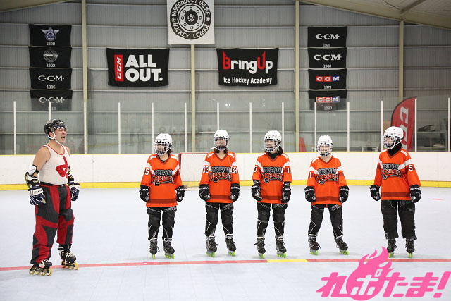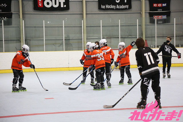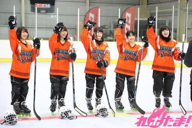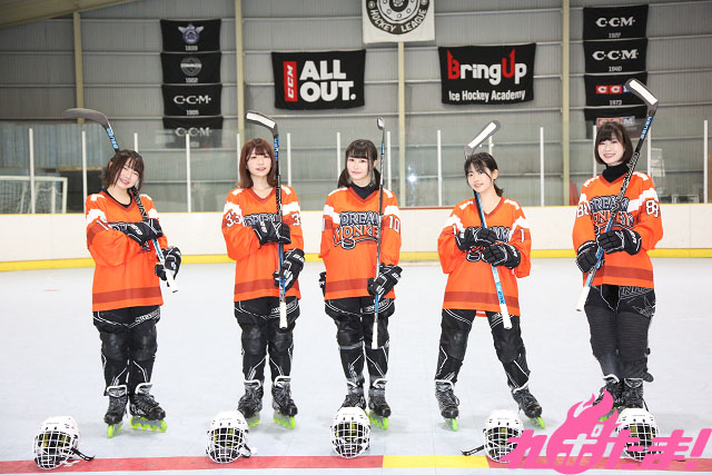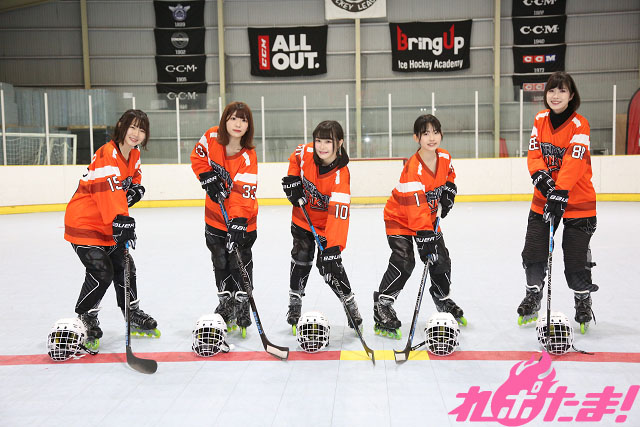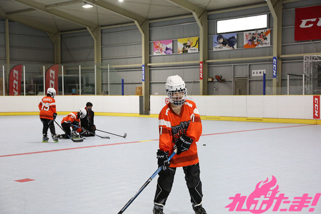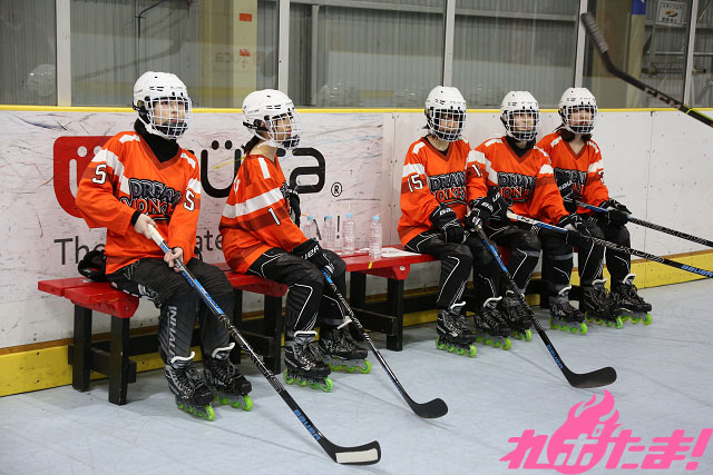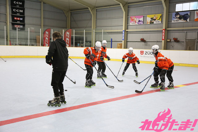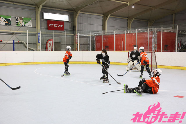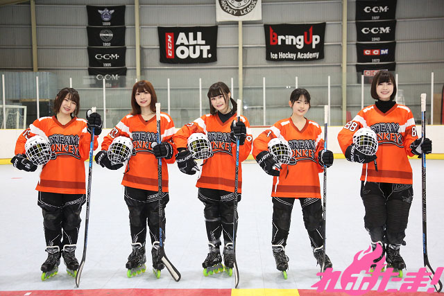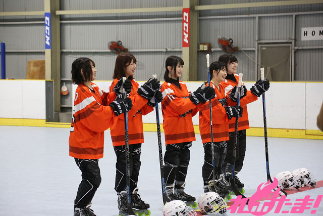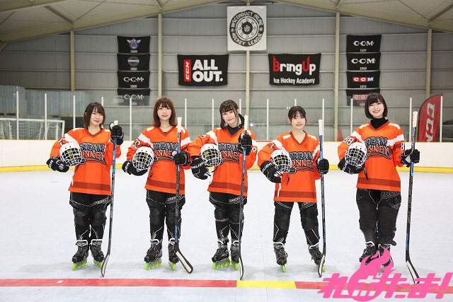 この日は水沢愛佳役・増田里紅、清瀬 優役・本郷里実、水沢彩佳役・相良茉優、柳田薫子役・森山由梨佳、小野真美役・青山吉能が“人生初”のインラインホッケーに臨んだ。