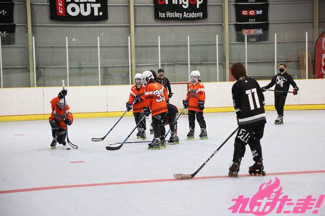 そして迎えた試合形式の実践練習では、激しいぶつかり合いもあり、転倒してしまう選手も多数。少々危険な練習となったが、そのぶんゴールをキメることができたときの、よろこびもひとしおのようだった。