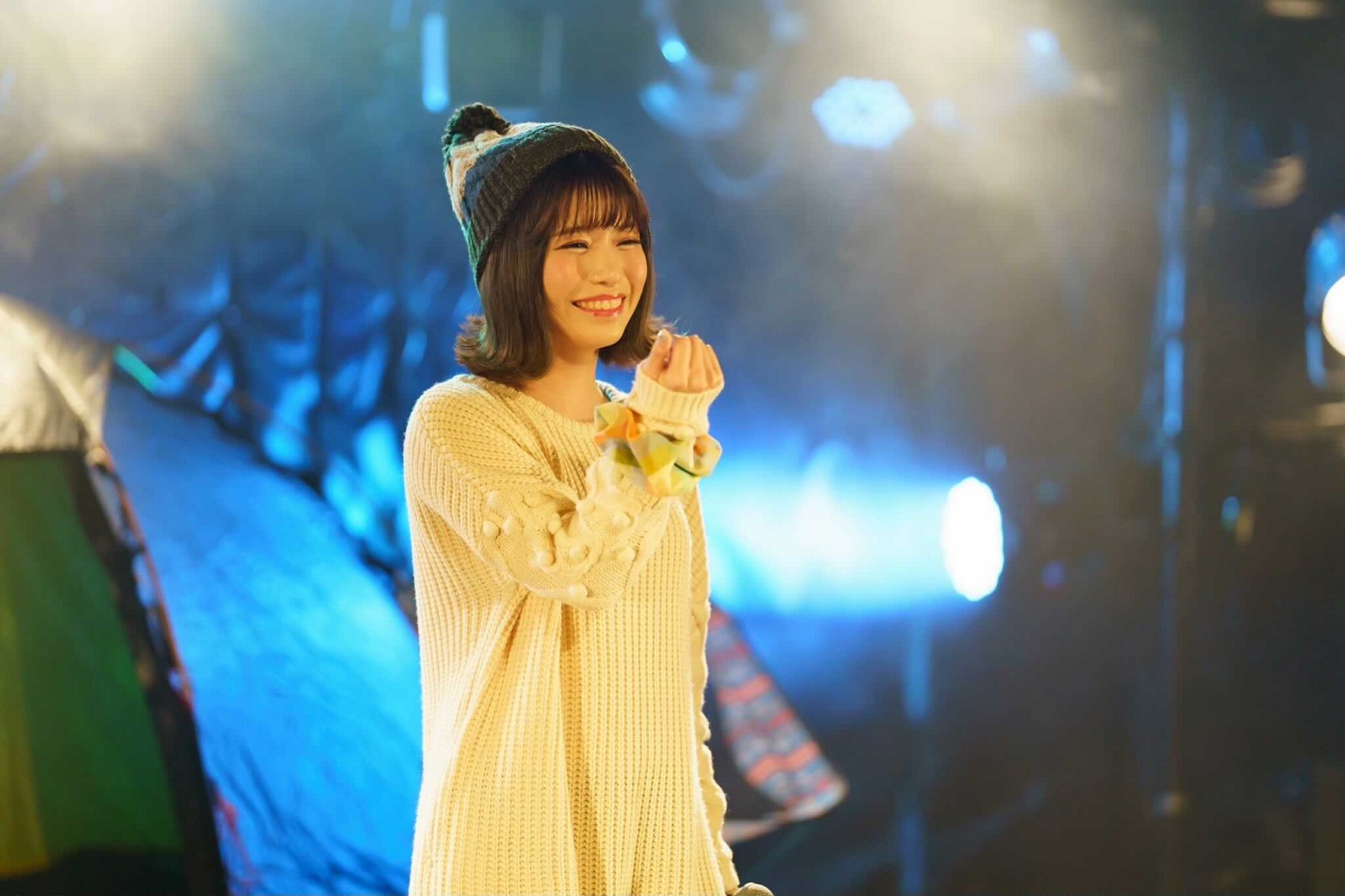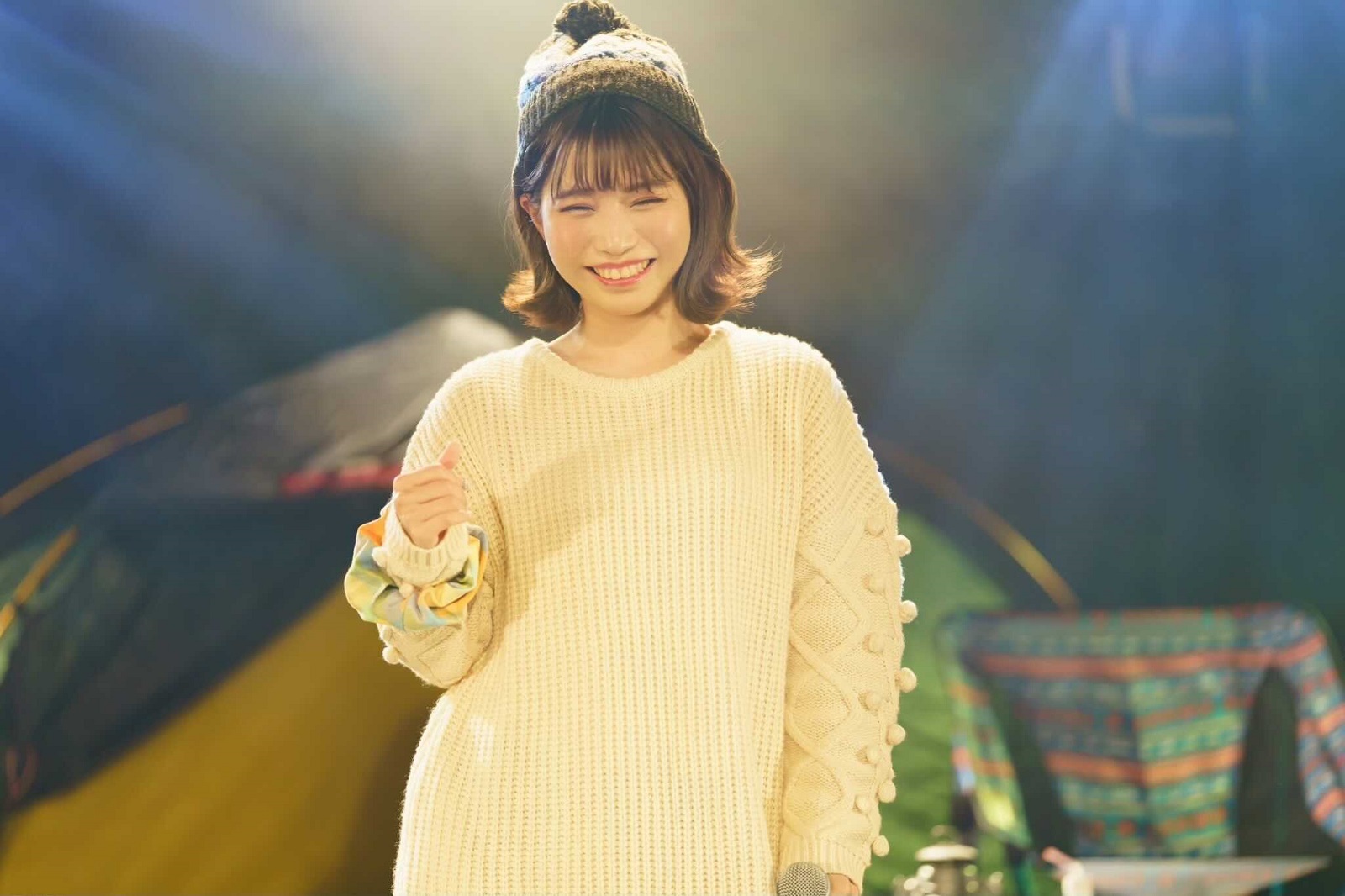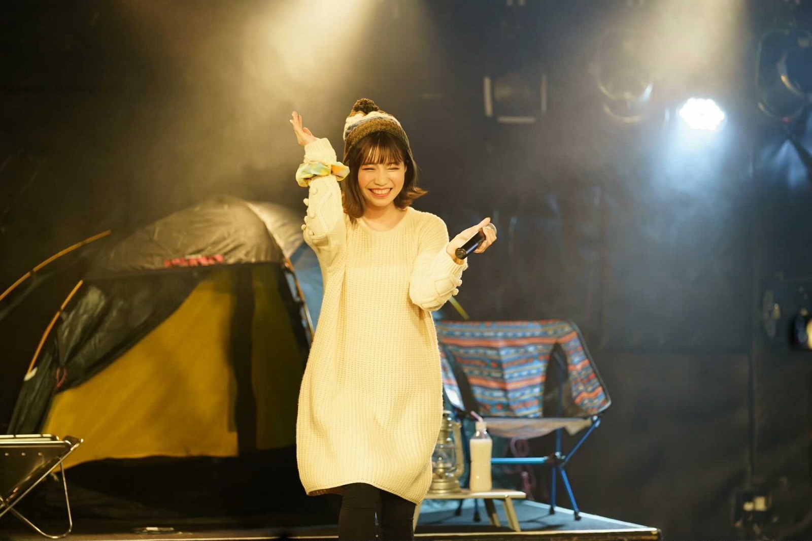 ゆるゆるとした雰囲気の中で歌うの新鮮だったね。テントやキャンプグッズをバックに楽しく歌わせていただきました。