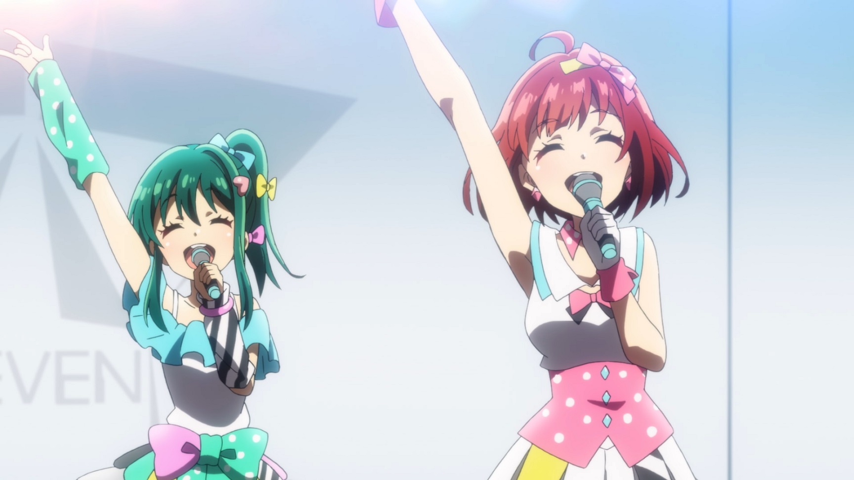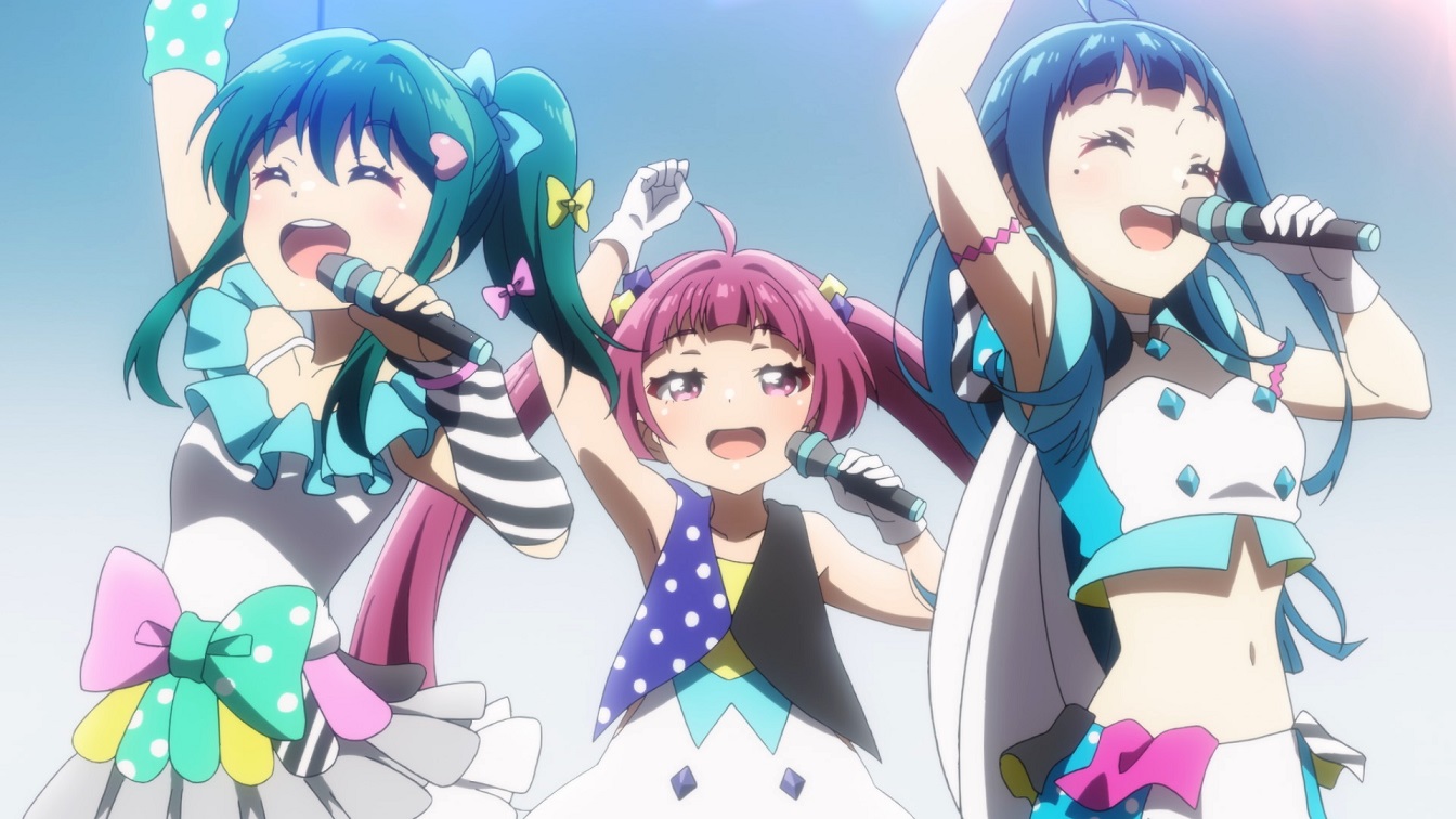 後日、彼の元を訪ねたハルたちは、滑川(なめかわ)コンツェルンからの買収⾏為により、八角スタジオ が閉館の危機に曝されている事を知る。 ライブを⾏い、客席を満員にすることができれば、資⾦援助が継続されると聞いたハルたち「777☆ SISTERS」は、数々のアイドル、そしてファンとの思い出が詰まった『HAKKAKU』を救うために⽴ち あがることを決意する。しかし、そんな彼⼥たちの前に、思わぬ壁が⽴ちふさがって……。