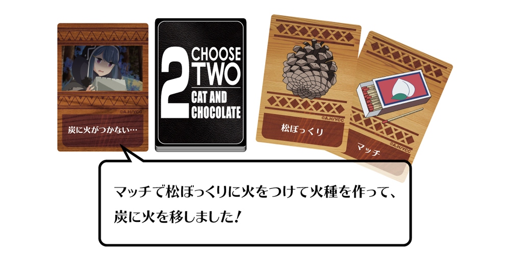 「ゆるキャ△ット&チョコレート」では、作品中で実際に起こったアクシデントをイベントカードに採用し、プレイヤーは作品のことを思い出しつつ、「ゆるキャン△」の世界観を擬似体験できるゲームとなります。今回はそんなゲーム中で行われるアクシデントの回避案をいくつかご紹介します!