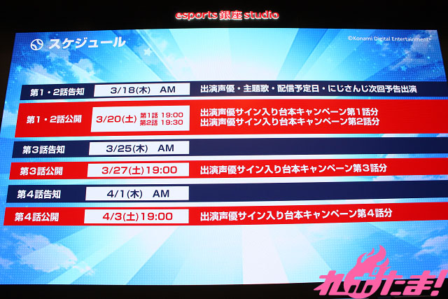 3月17日には東京・コナミクリエイティブセンター銀座でメディア向け先行上映会が開催。第1話・第2話が上映されたほか、アニメ企画担当の林潤アシスタントプロデューサーとモニター越しのリモート出演となった渡邉徹監督による質疑応答がおこなわれ、本作の制作に至った経緯や作品の魅力、制作秘話などを熱く語ってくれた。