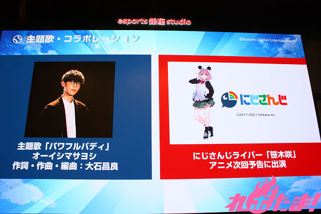 林:今年の頭からにじさんじ×『パワプロ』というコラボをさせていただいておりまして、第一弾として「イベキャラコンペ」という人気ライバーがサクセスで自分に似せた選手を作成してプレゼンするという企画をさせてもったんですね。そのときに司会進行・審査員役をされた笹木咲さんに第二弾のサプライズコラボとして、アニメの次回予告で参加いただきました。お互いアニメ好きゲーム好きをファンに持っておりますので、相乗効果が得られるのではないかと期待しています。