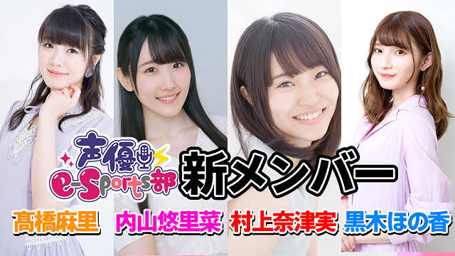 3月20 日に追加メンバー「4期生」(黒木ほの香、村上奈津実、内山悠里菜、髙橋麻里)が出揃ったばかりのe-Sports業界・ゲーム業界の応援企画「声優 e-Sports部」の1期生2期生の活動が4月早々に決定した! この日の配信では参加型プレイも予定されている。
