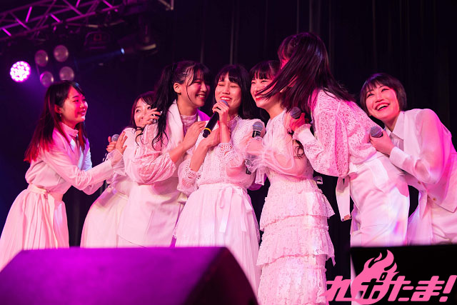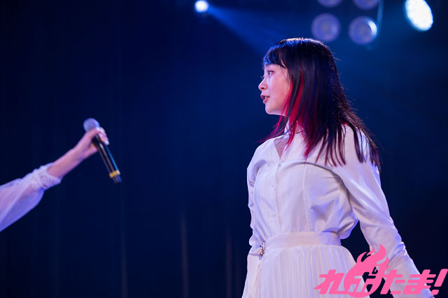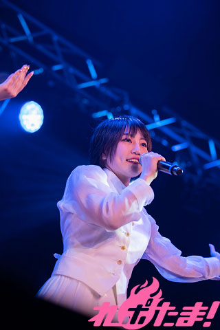 最後は激しい光に照らされて、「二次元ポケット」を熱唱。各メンバーの歌唱パートが際立つこのナンバーは、最後を飾るにふさわしいナンバーと言えよう。ヘッドバンキングも見せつけ、まさにお祭り状態! アニメを全力で応援し続けたメンバーによるステージは笑顔に包まれて幕を閉じたのだった