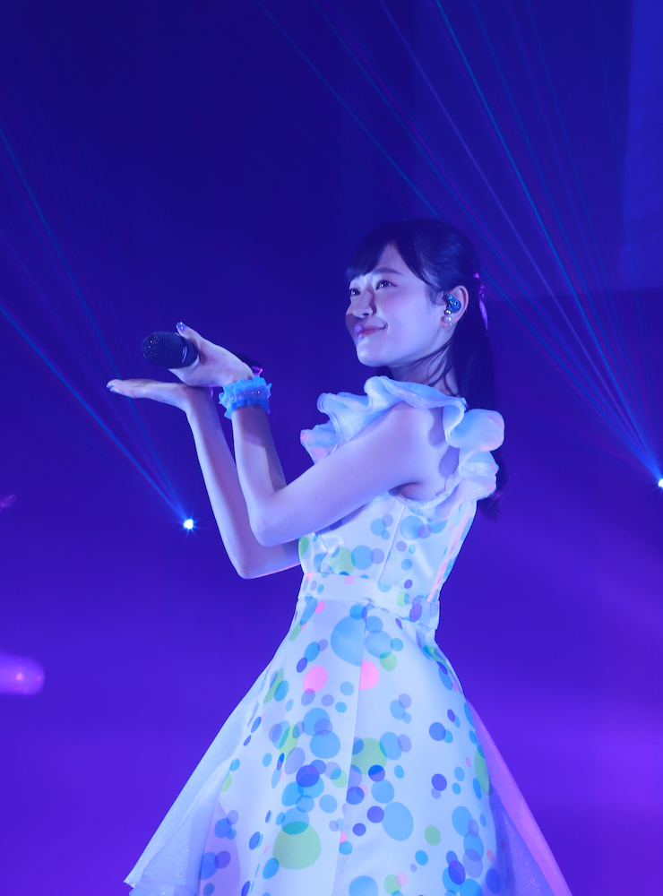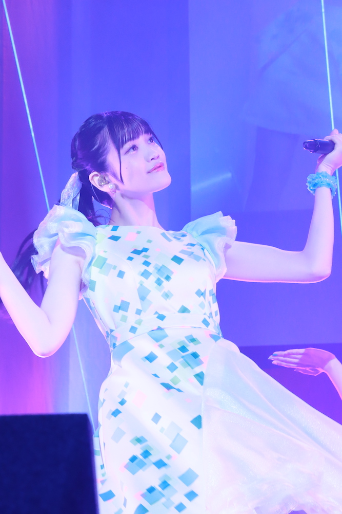 2曲目と3曲目はカバー曲を歌唱することに。まずはharmoeの音楽プロデューサーであるTomggg氏の人気曲「Butter Sugar Cream」をカバーし、Tomggg節ともいえるカラフルで甘いダンスポップを軽やかなダンスとともに披露した。続いての「Greed Greed」は「Wonder girl」を提供したKiWiの楽曲のカバーで、ファンタジー要素のある“KiWi物語”というコンセプトをharmoeとしての新解釈を示すかのようなパフォーマンスを見せた。