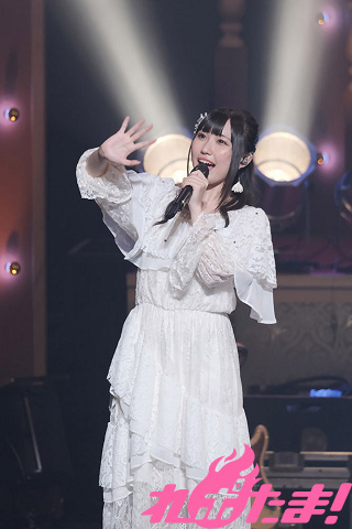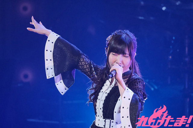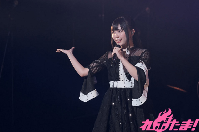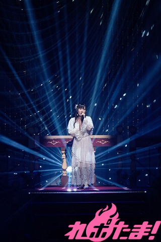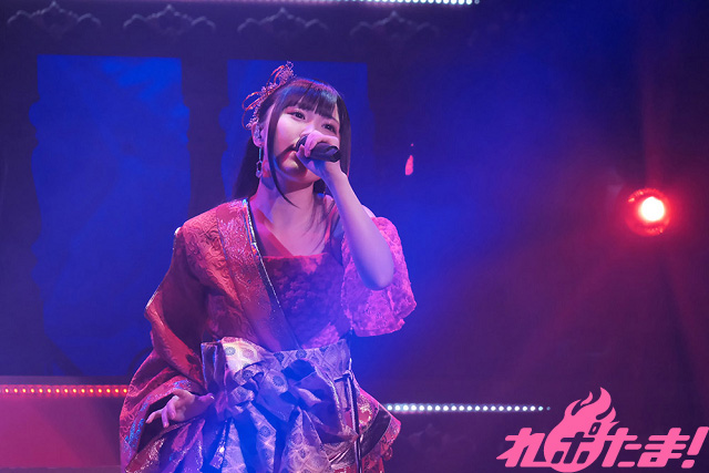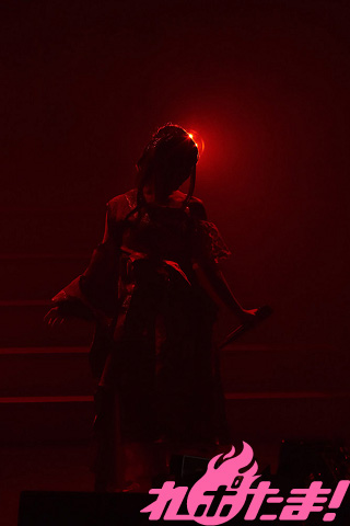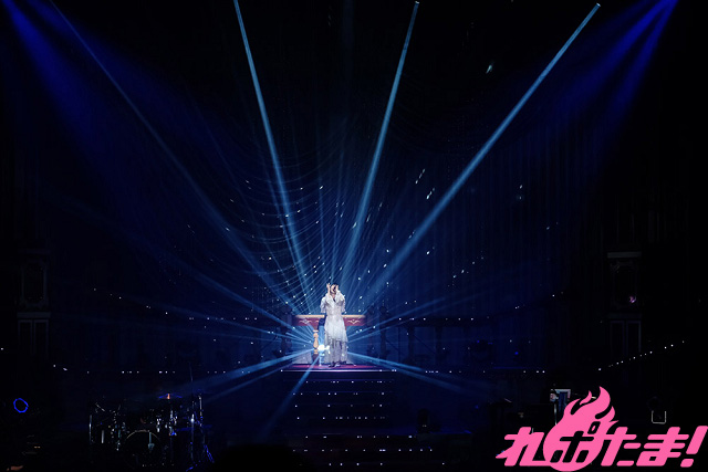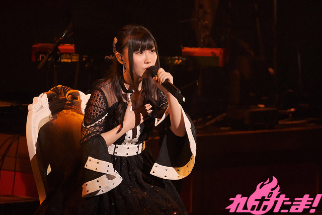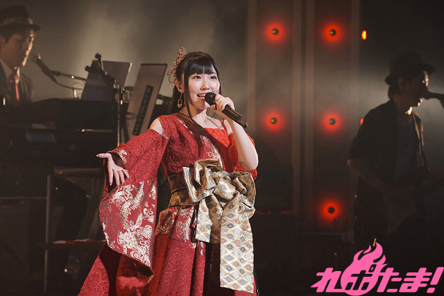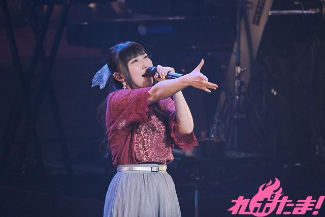 続いてカバー曲コーナーでは、高校時代「全日本アニソングランプリ」に出場した際に歌唱した、SNoWの「逆さまの蝶」を赤いサイリウムが光るなかで歌唱。そして、同決勝で披露したという陰陽座の「甲賀忍法帖」を歌い終えると、「アニソンシンガーとして歌いたかった曲を、みなさんの前で歌えて感激です!」と感慨深げに語った。