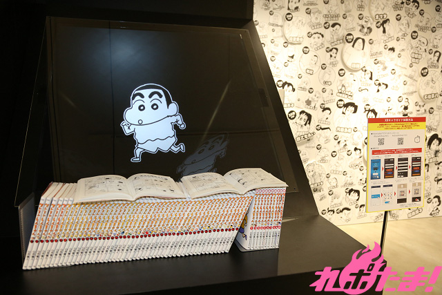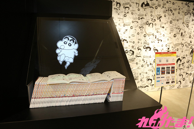 今回は主に原作・アニメがフィーチャーされ、主人公・野原しんのすけのホログラムや年表、原作とアニメ映像との比較ができるコーナー、さらにしんのすけの友だち・ネネちゃんが、何かと●●するウサギのぬいぐるみなど、作品ファンには思わずニヤリの展示物が満載!