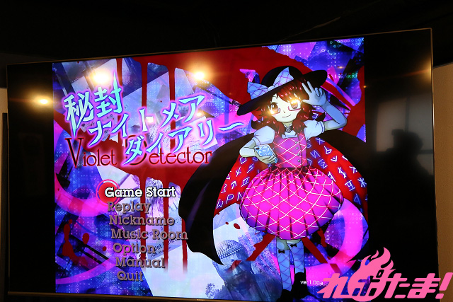▲店内の様子。「東方」シリーズの足跡を詳細に明記した年表やキャラクターたちがお出迎え! さらに、大画面でゲームのプロモーション映像も見ることができます。