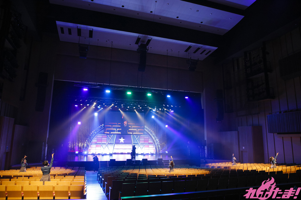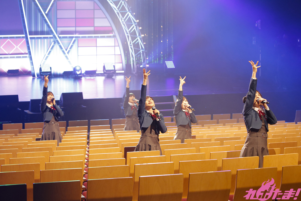 続いて両手を左右に振りながら「Dreaming Energy」を歌唱すると、オーディションの様子が映像で流れる。さらに、デビューシングルのレコーディング風景、そして意気込みがひとりひとりから語られると、今度は客席に移動した5人が「私のSymphony」を披露した。