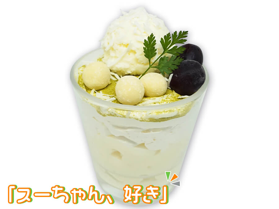 黒羽をイメージしてクローバーをトッピングしたロリ可愛パフェです。