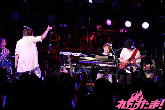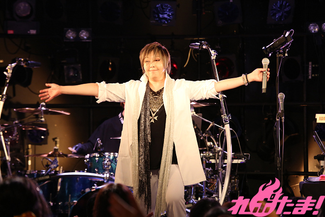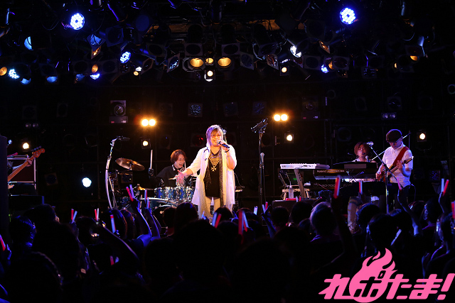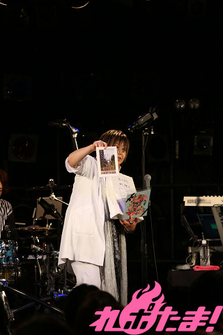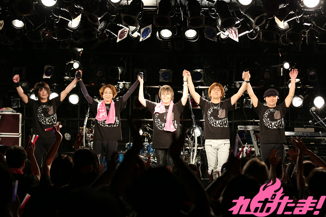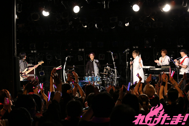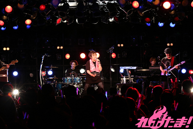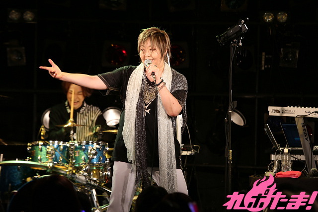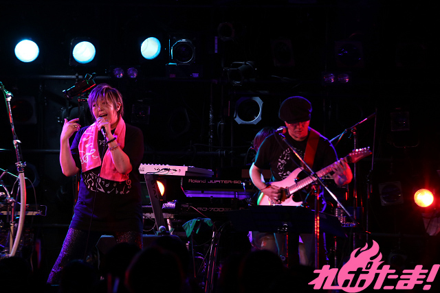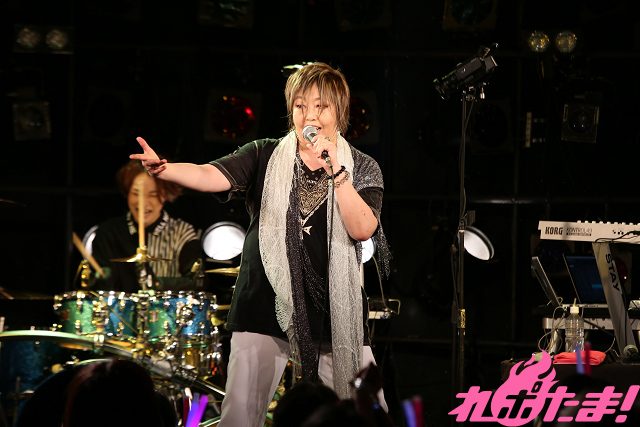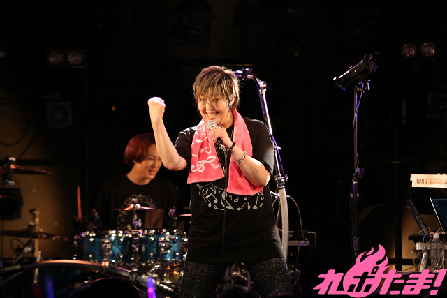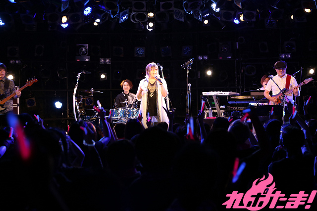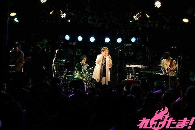 当日は緒方さんと、岩瀬聡志さん(キーボード&バンマス)、目木とーるさん(ギター)、TABOKUNさん(ベース)、青山英樹さん(ドラム)と、気心の知れたバックバンド4人が、集まったファンに最高の時間を届けた。