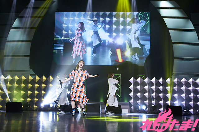 まずは、My Girlでの撮影と同じ衣装で登場した内田さんのライブステージから。赤いサイリウムに迎えられて「創傷イノセンス」を熱唱。そして「ハートビートシティ」を切なく歌い上げると、ステージ前方でファンからの応援を受けながら「+INTERSECT+」、そしてオレンジ色の光を浴びながら「ストロボメモリー」を披露した。