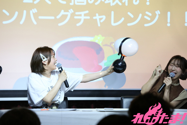 「2人で掴み取れ! ハンバーグチャレンジ」は、小坂井さんが大好きなハンバーグを獲得するため、飯田さんと協力(ときに対決)して様々なゲームに挑んでいく企画。