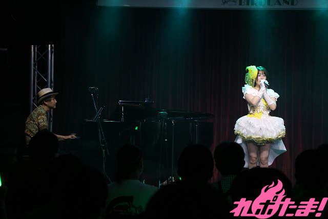 ピンクと黄色い光に照らされ、透き通るような歌声で客席を魅了した。