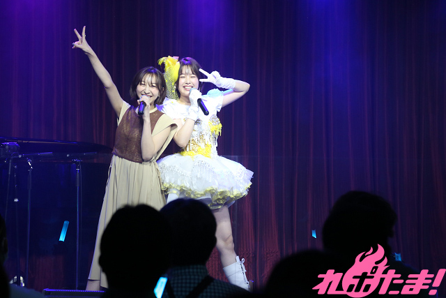 最後は飯田さんを呼び込み、『邪神ちゃんドロップキック』OPテーマ、邪神★ガールズの「あの娘にドロップキック」をデュエットで披露。「カラオケでは何度も歌っているけど(笑)イベントで、ふたりきりで歌うのは初めて」というふたりの、息の合ったパフォーマンスで会場も大盛り上がり!