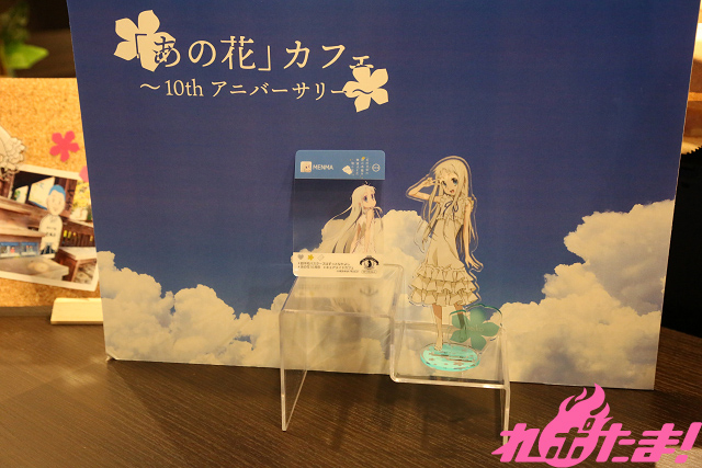 さらに、色とりどりの展示はもちろん、10周年を記念した多数の先行販売グッズなど『あの花』づくしのキュアメイドカフェ。